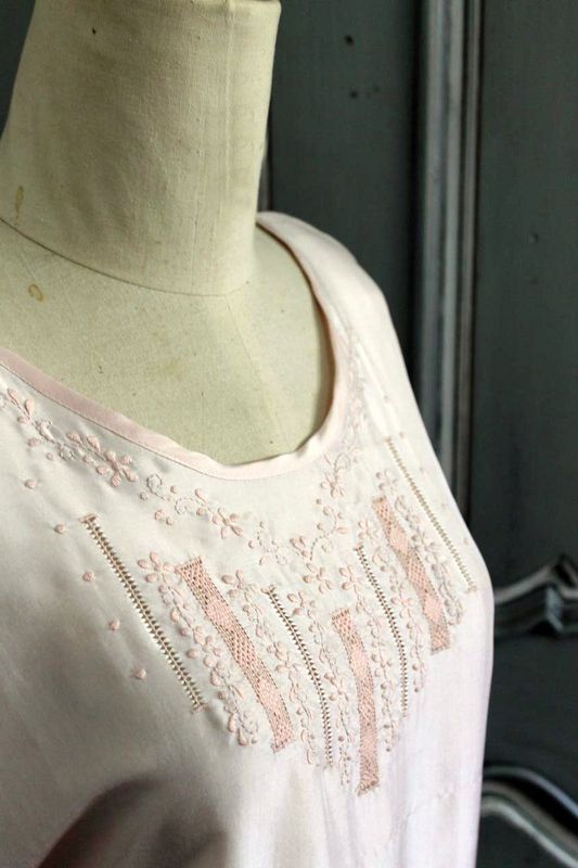 Pure luxury with pure silk. Sweet dreams in this pink hand embroidered nightie. So pretty and just a little bit sensuous. 100% silk.