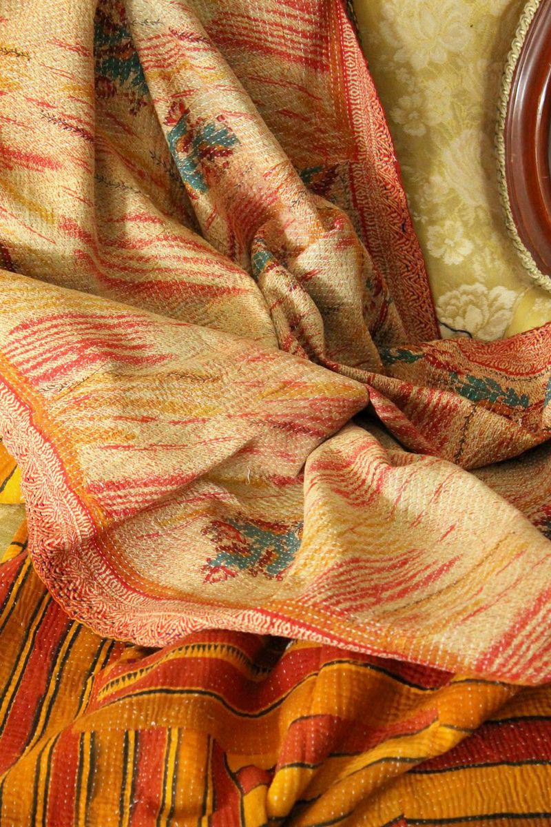 Handstitched vintage sari katha quilted throw - "Danna" listed in: