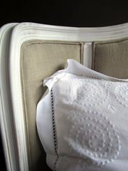 A little luxury for your bed. The most exquisite hand embroidery in white with pulled thread work. Cascading circles on 100% cotton. These sheets are embroidered in Vietnam by a family of women with French training. Sweet dreams!