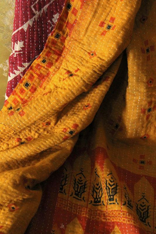 Handstitched vintage sari katha quilted throw - "Nada" listed in: